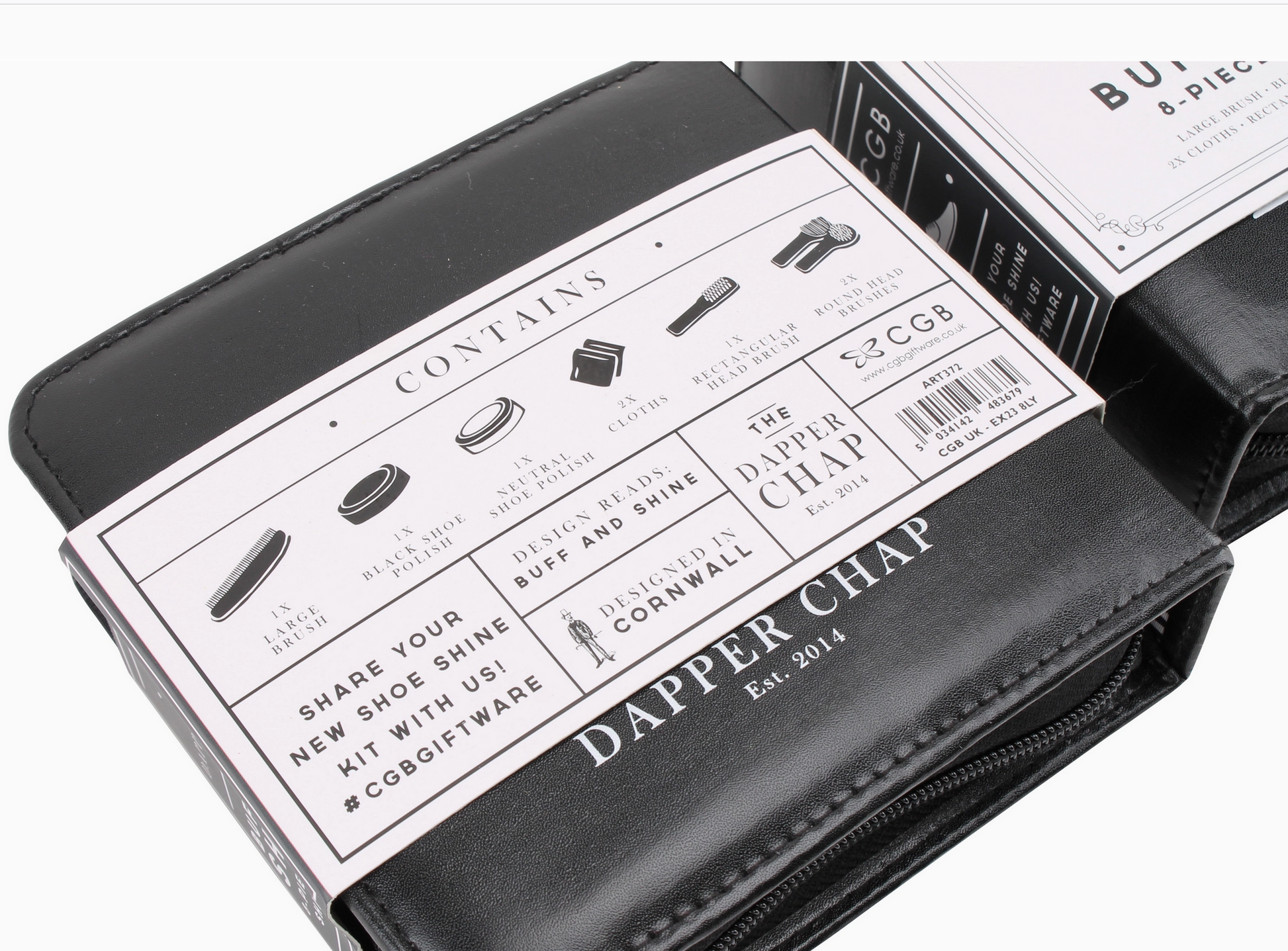 Great gift for the man that has everything! | Rubberwood brush handles & PVC brush fibres. Includes brushes, black & neutral polish & buffers